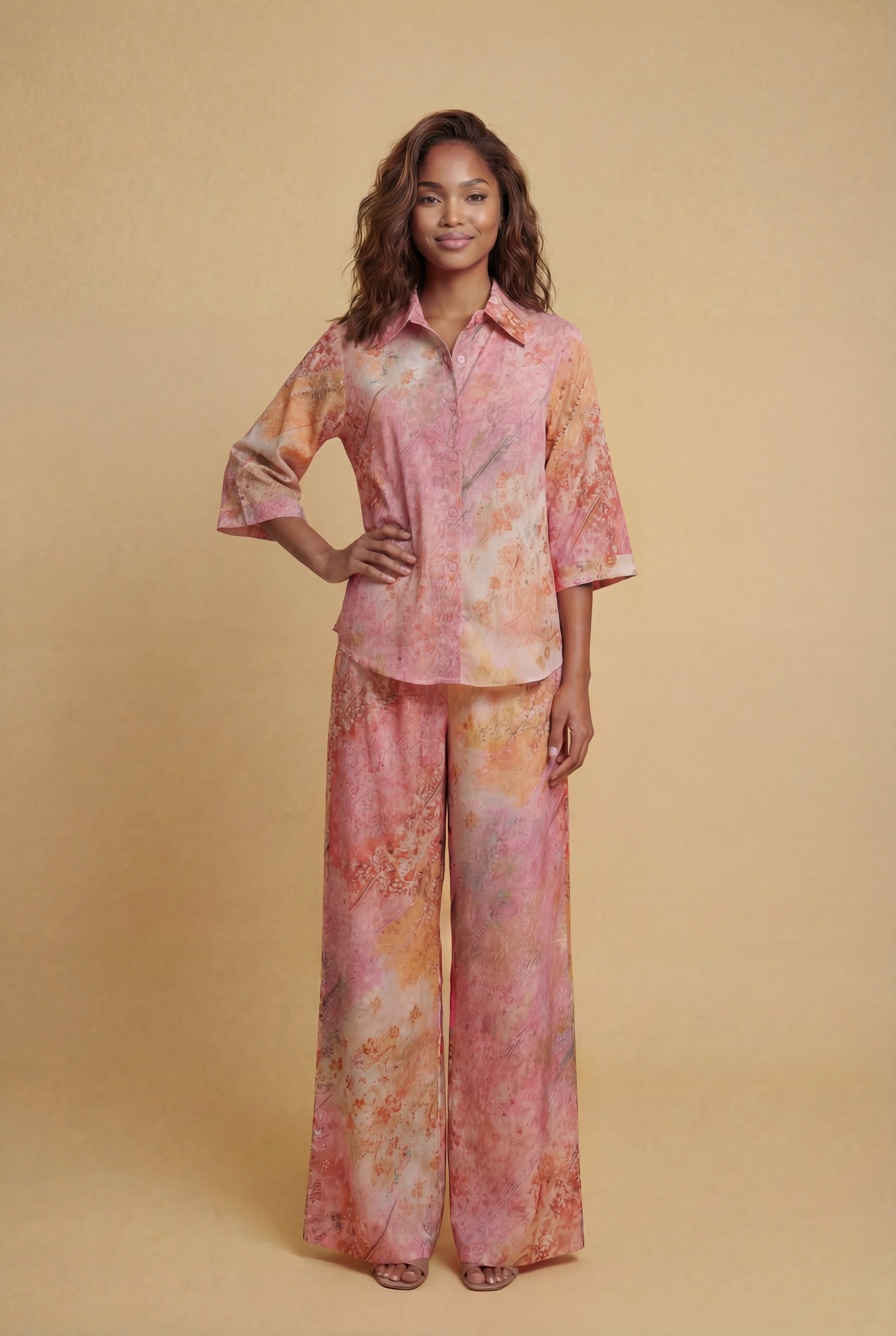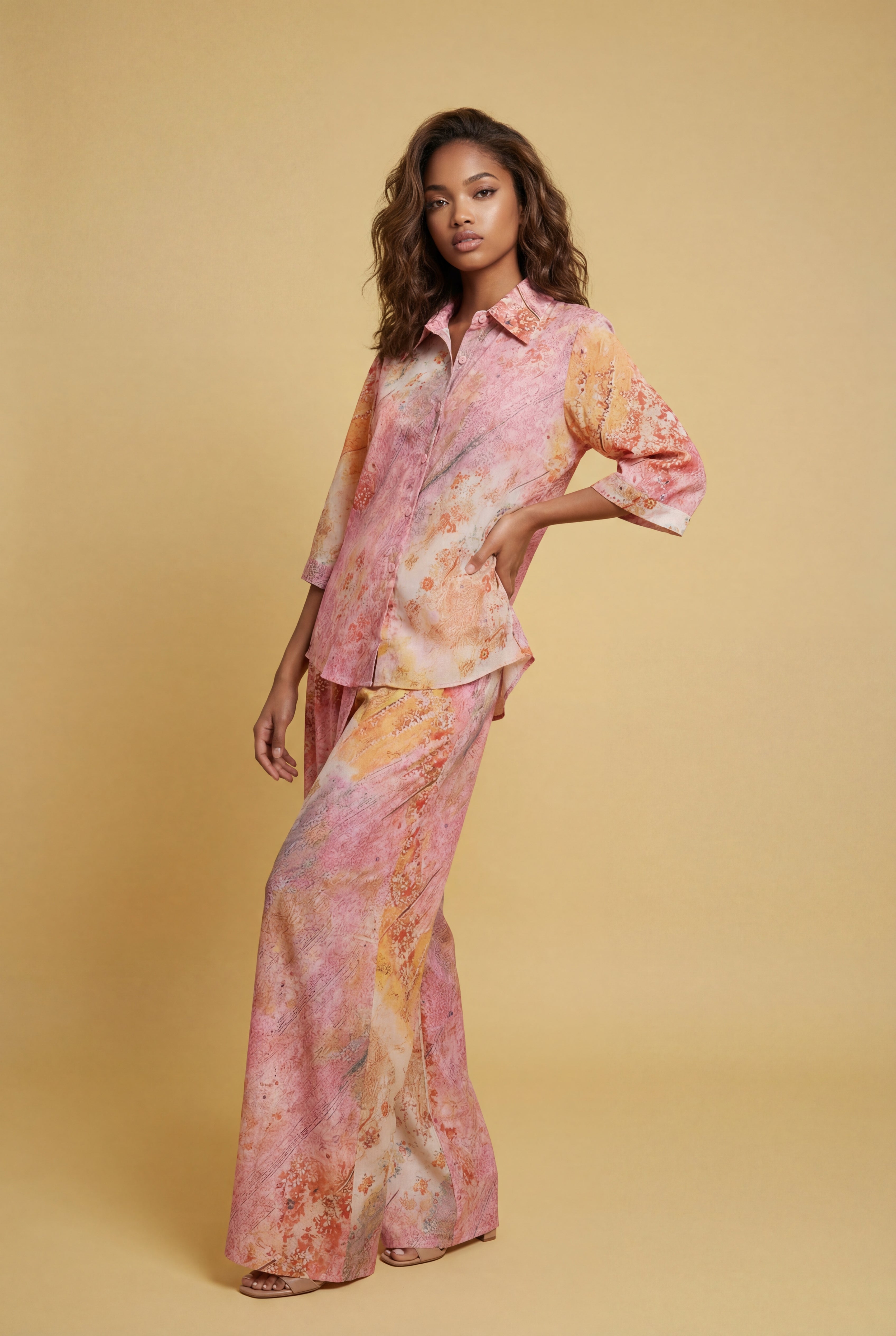 W5977AB SUNSET MARBLE PRINT PANT SET