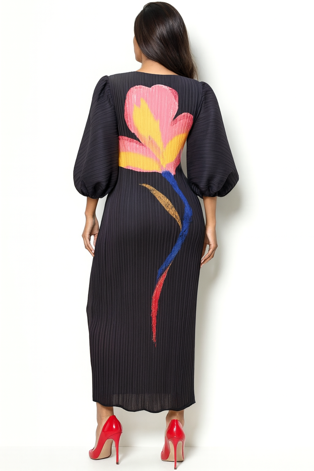 N24167 ABSTRACT BLOOM CRINKLED DRESS (M, L, XL)